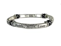 Discount Inspirational Faith, Hope, Love Magnetic Hematite Healing Stretch Bracelet. The iron in our blood acts