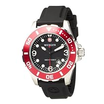 Wenger 72233 Review: Wenger Men's 72233 AquqGraph 100M Red Bezel Black Rubber Strap Watch. Great sport watch with rubber/silicon band. Bold green color bezel looks great (copy of the Rolex style from a few years back) but they do a good job making it their own. Best thing is that the dial is simple, bold and easy to read! It's not cluttered like most watches I see these days. It's pretty big on the wrist, but that is the current style of these kind of watches, and why I purchased it (it's not "rapper" big). I own a blue Rolex Submariner two-tone and a ... Read more »